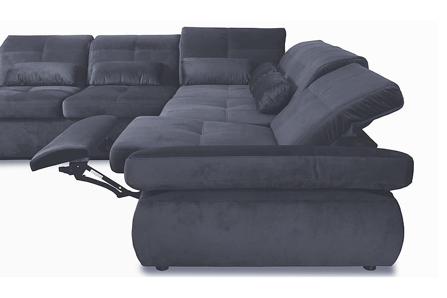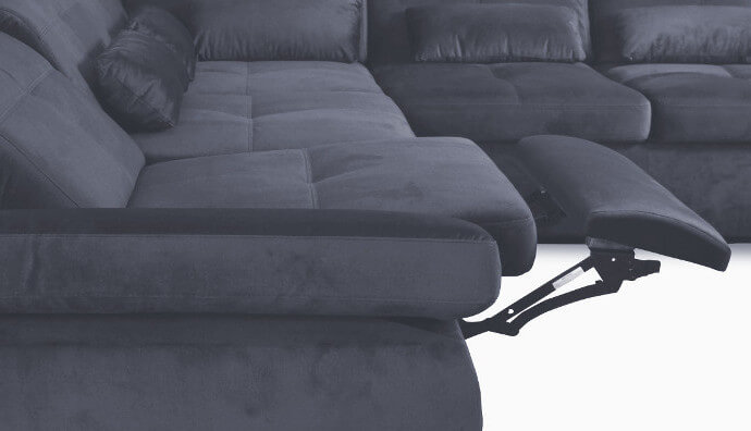 Narożnik posiada mechanizm wysuwania siedziska i oparcia sterowany elektrycznie. Dla osób ceniących przede wszystkim wygodę, ponieważ kąt nachylenia oparcia i podnóżka zmieniasz bez konieczności wstawania (przycisk ukryty między siedziskami–wystarczy nacisnąć).