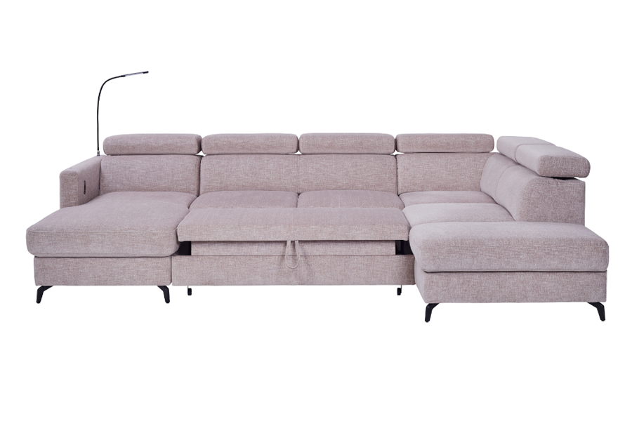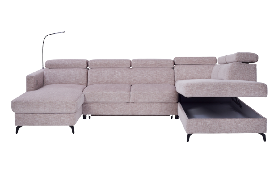Nowoczesny zestaw wypoczynkowy zaprojektowany z myślą o maksymalnej funkcjonalności i wygodzie. Modułowa forma pozwala dowolnie konfigurować układ, dopasowując go do każdej przestrzeni. Szezlong z przedłużonym siedziskiem idealny do relaksu, regulowane zagłówki – pełne dopasowanie pozycji oraz wygodna funkcją spania okazjonalnego.