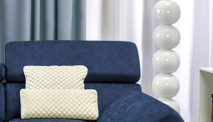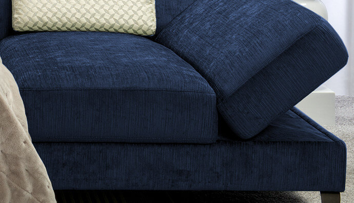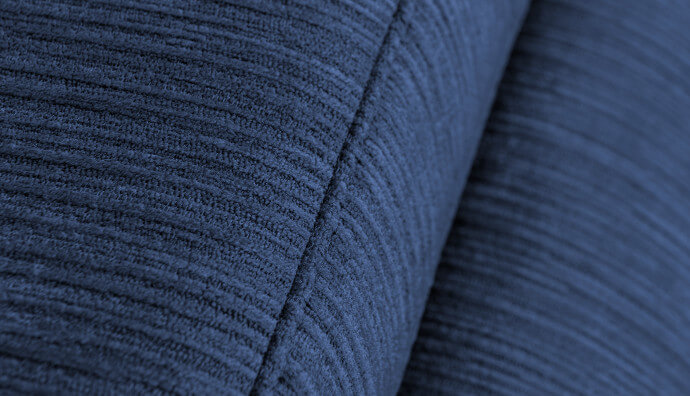 Narożnik w całości, a nie tylko niektóre części – pokrywa tkania zaprojektowana przez znanego projektanta Macieja Zienia. Jest to wysokogatunkowa, miękka tkanina szenilowa, bardzo delikatna w dotyku, ale zarazem bardzo wytrzymała, o pięknej, wyraźnie widocznej fakturze. Powstała w technologii „Magic Home” ( łatwe czyszczenie za pomocą czystej wody wraz z utrudnionym wchłanianiem cieczy). Tkanina Cabrera 07 (granat).
