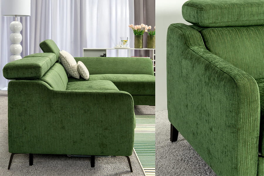Regulowane zagłówki z możliwością dostosowania nachylenia, są dużym atutem oraz wygodną opcją umożliwiającą komfortowy wypoczynek. Dzięki możliwości ich regulacji, możemy zmieniać również design narożnika.