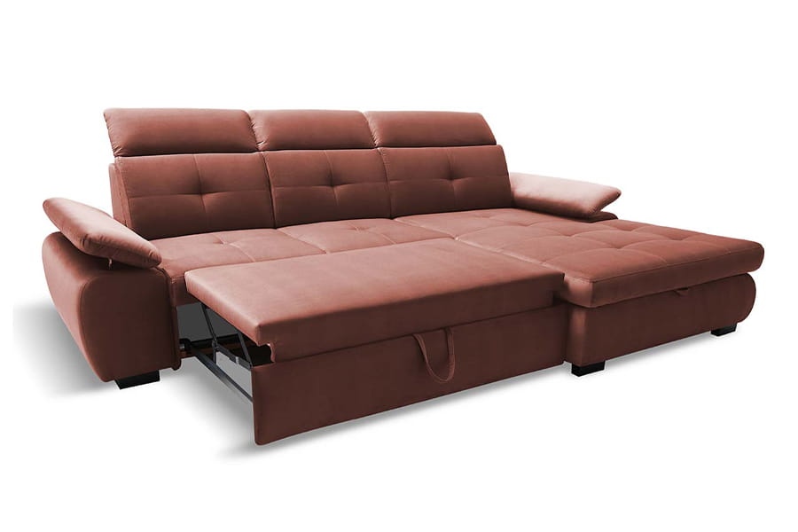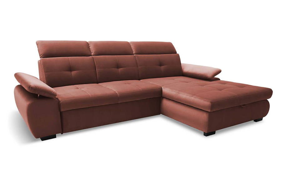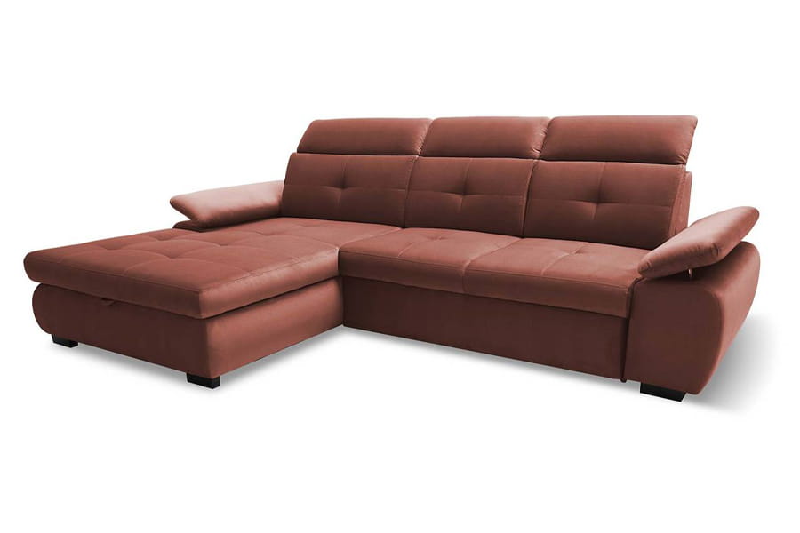 Nowoczesny narożnik Wind II wyróżnia się opływowym kształtem oraz licznymi pikowaniami na siedzisku, które nadają mu wyjątkowo modnego akcentu. Narożnik posiada ruchome zagłówki oraz podłokietniki zwiększające komfort wypoczynku. Ponadto ten funkcjonalny mebel rozkłada się do spania, co będzie bardzo przydatne podczas wizyty gości, a praktyczny pojemnik pod siedziskiem będzie idealnym miejscem na przechowywanie pościeli. Użycie wysokogatunkowych materiałów – sprężyny falistej oraz pianki poliuretanowej HR gwarantują niebywały komfort wypoczynku.
