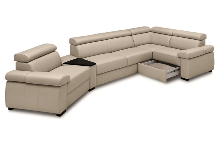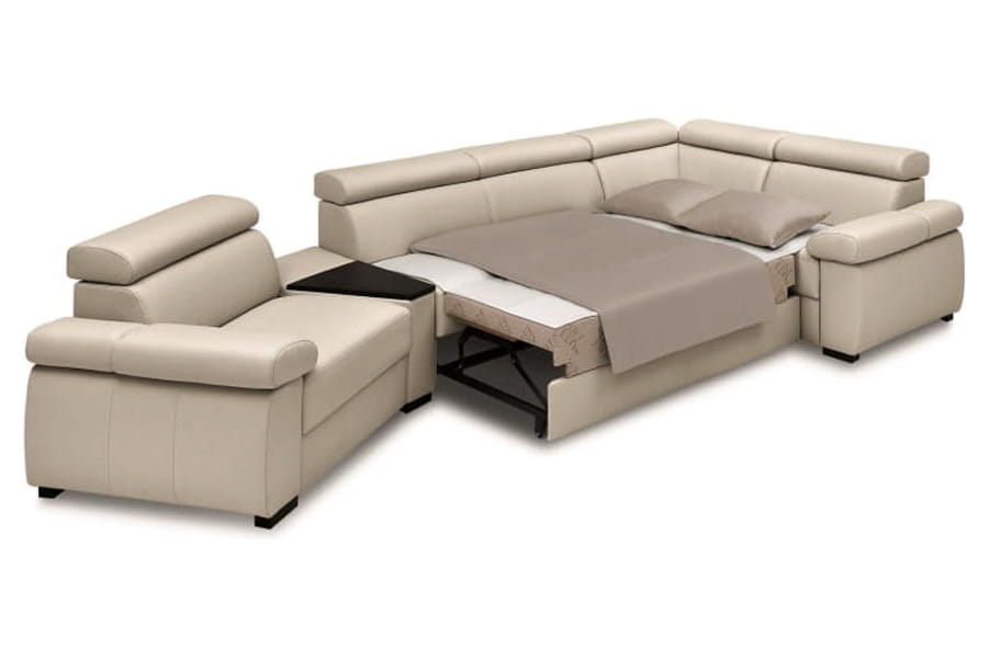 - funkcja spania szufladowo-podnośnikowa (rozłożenie polega na odblokowaniu specjalnego zaczepu blokującego w narożniku, który zwalnia mechanizm przesuwny, a następnie przesunięciu części mobilnej wyposażonej w kółka)