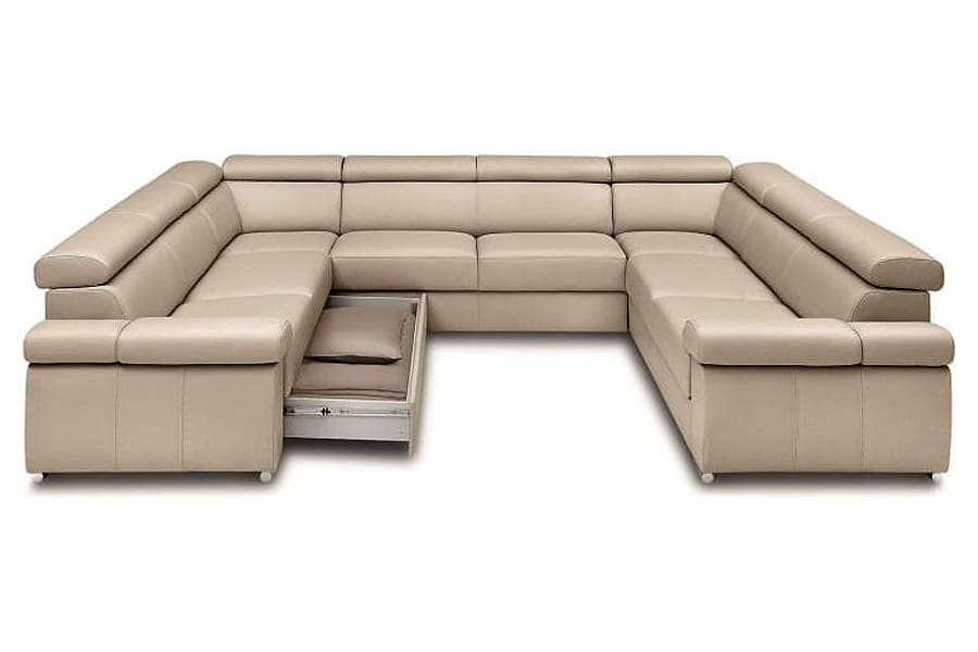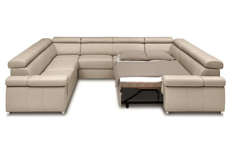- funkcja spania szufladowo-podnośnikowa (rozłożenie polega na odblokowaniu specjalnego zaczepu blokującego w narożniku, który zwalnia mechanizm przesuwny, a następnie przesunięciu części mobilnej wyposażonej w kółka)