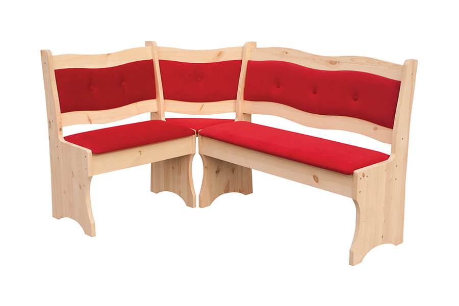 Materiał z litego drewna sosnowego posiada naturalne właściwości konstrukcyjne i ekologiczne. Wykonany z litego drewna sosnowego narożnik tapicerowany fala G (z guzikami) lub fala P (z przeszyciami) idealnie wkomponuje się w przestrzeń kuchni lub jadalni. Możliwość wyboru koloru i tapicerki z wzornika pozwalają dostosować narożnik do pozostałych mebli oraz nadać indywidualny charakter.