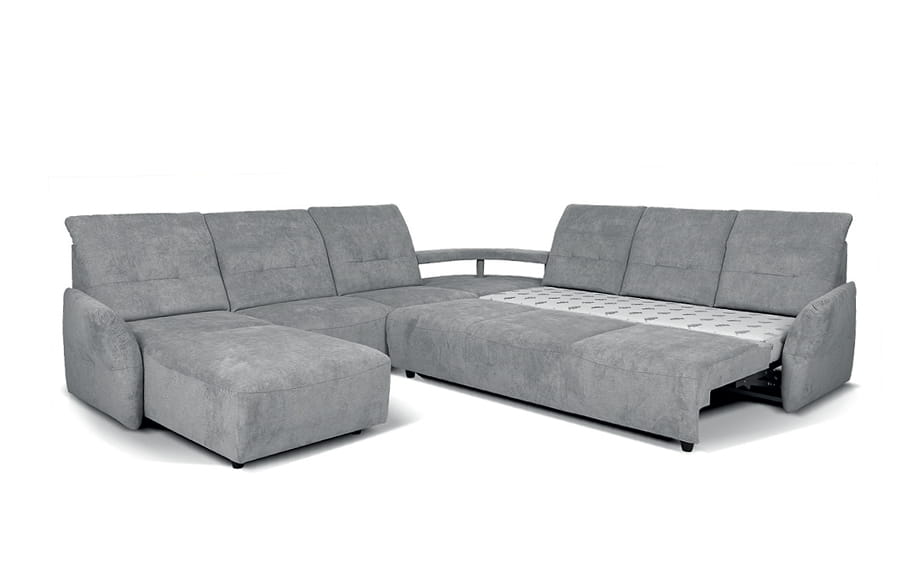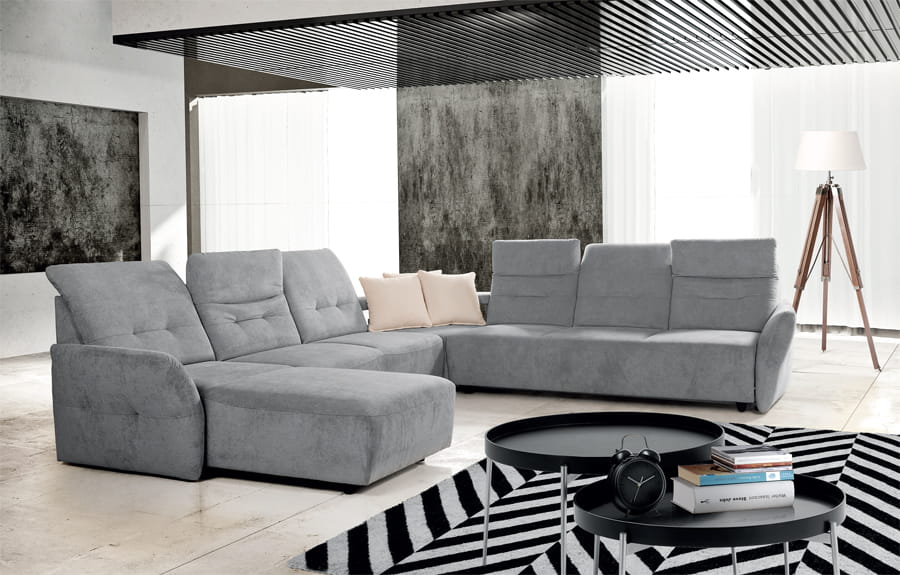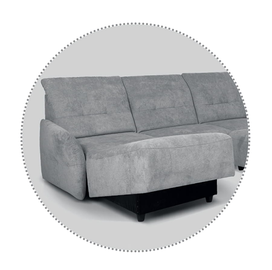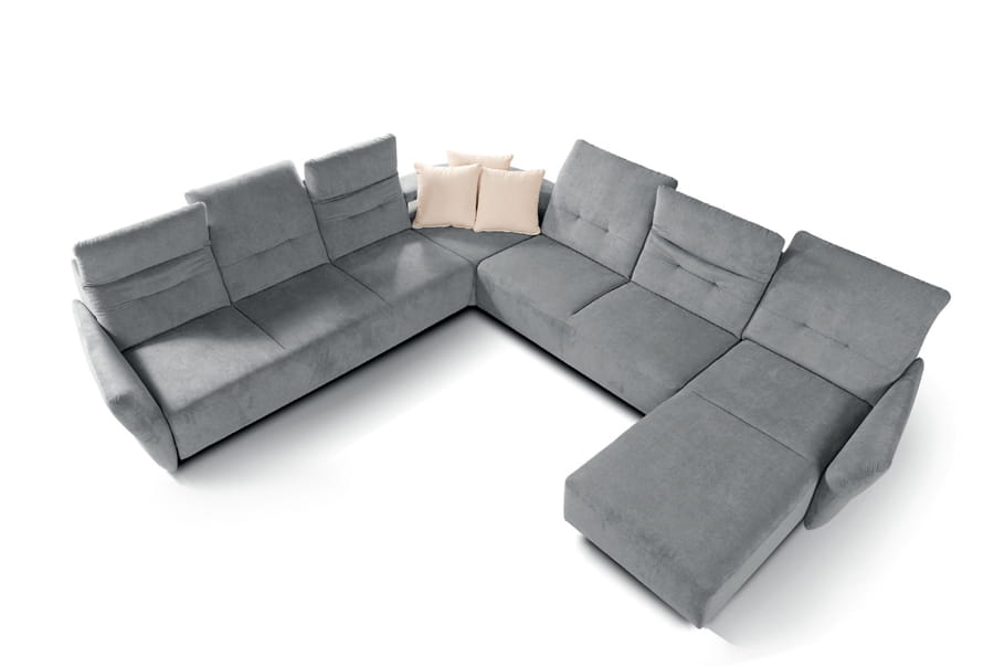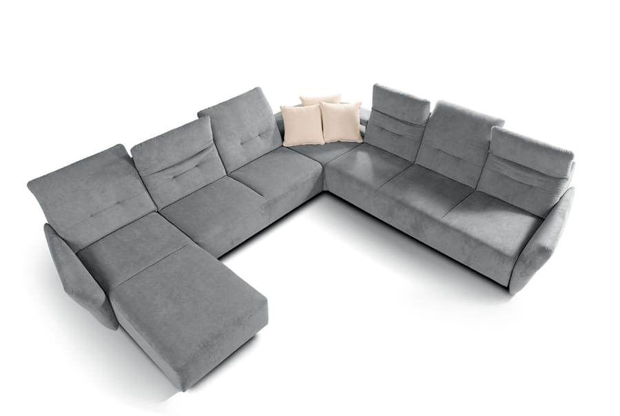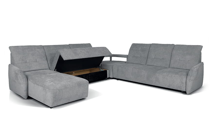 Subtelny i praktyczny system modułowy z różnymi wariantami konfiguracji. Komfort zapewnia kombinacja sprężyn i pianki wysokoelastycznej, ruchome części każdego z oparć pełnią rolę regulowanych zagłówków. Funkcja do leżenia i pojemniki na pościel zwiększają możliwości wypoczynku.