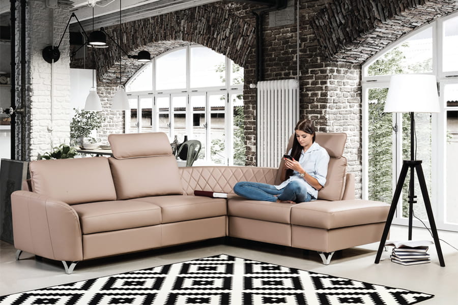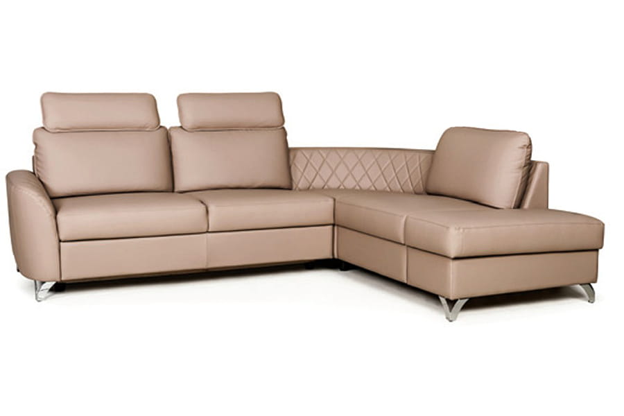 Elegancki narożnik Desio to połączenie wygody i dobrego stylu. Idealna propozycja zarówno do nowoczesnych, jak i klasycznych aranżacji. Narożnik posiada wsuwane zagłówki ( za dopłatą ), co sprawia, że można wygodnie oprzeć głowę podczas wypoczynku. Prosta, minimalistyczna forma stojąca na eleganckich płozach wyposażona została w liczne udogodnienia, które sprzyjają codziennemu wypoczynkowi. Kolejną praktyczną zaletą narożnika jest niezawodny system rozkładania oparty na wózku. W krótszym boku mebla kryje się natomiast obszerny pojemnik na pościel. Narożnik występuje w wersji prawostronnej oraz lewostronnej.