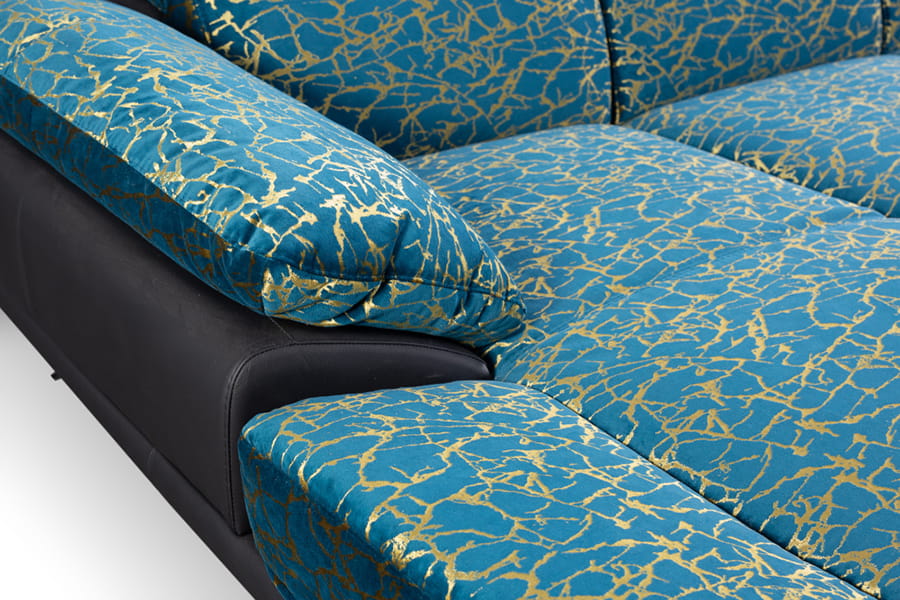 - narożnik tapicerowany w tkaninie i skórach naturalnych