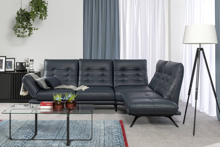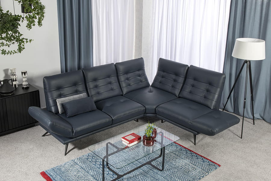 Narożnik został wyposażony w metalowe nóżki, malowane proszkowo które nie tylko dodają jej charakteru, ale również umożliwiają bezproblemowe utrzymanie czystości.