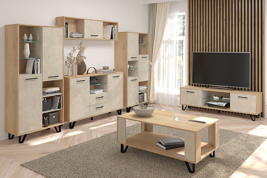Meble BOSS to kolekcja o nowoczesnej linii. Do produkcji mebli wykorzystano najwyższej jakości płyty laminowane oraz akcesoria, dzięki czemu meble są trwałe i solidne. Na uwagę zasługują wysokie, metalowe nóżki w kolorze czarnym. Kolekcja jest dostępna w kilku wersjach kolorystycznych do wyboru. Świetnie sprawdzi się w salonie, pokoju dziennym, przedpokoju, sypialni i innych pomieszczeniach mieszkalnych.