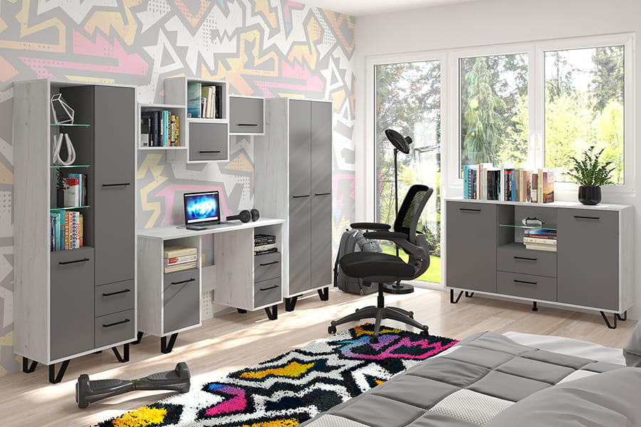 Regał BOSS 2D2S - craft biały-grafit