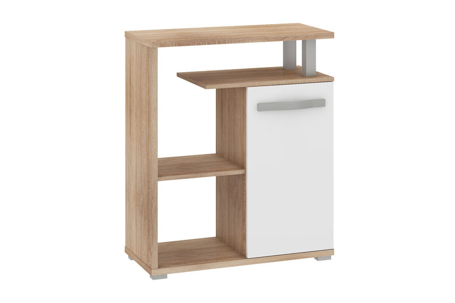 - regał wyposażony jest w 1-drzwiowy front oraz dodatkowe, widoczne półki, które możesz wykorzystać na dowolne przedmioty