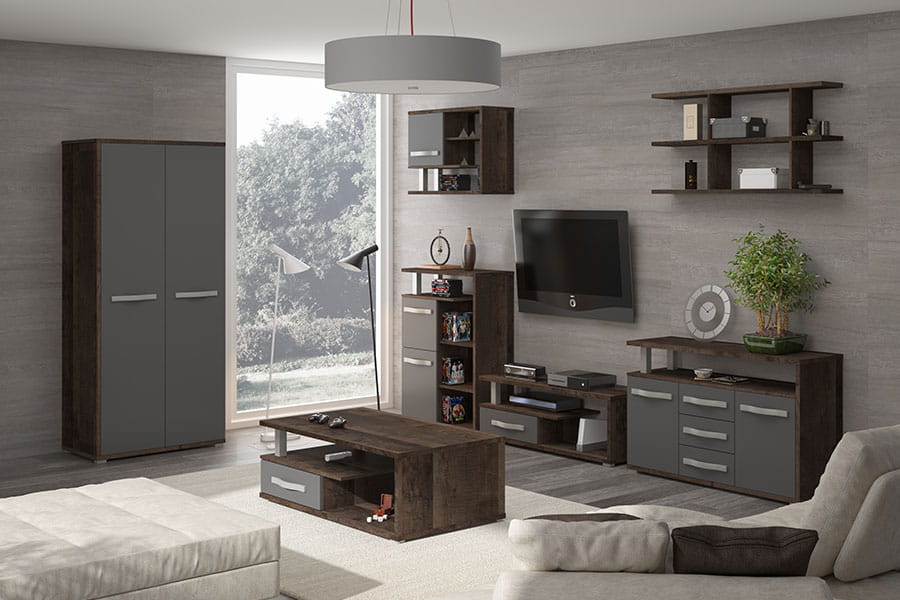Kolekcja ANGEL to nowoczesne meble przeznaczone do aranżacji pokoju dziennego lub pokoju młodzieżowego. System mebli został wykonany z wysokiej jakości płyty laminowanej. Kolekcja została wykonana w kilku wersjach kolorystycznych do wyboru, dzięki czemu na pewno znajdziemy coś dla siebie. Dzięki użytym do produkcji materiałom mamy pewność, że meble będą nam służyć przez długie lata.