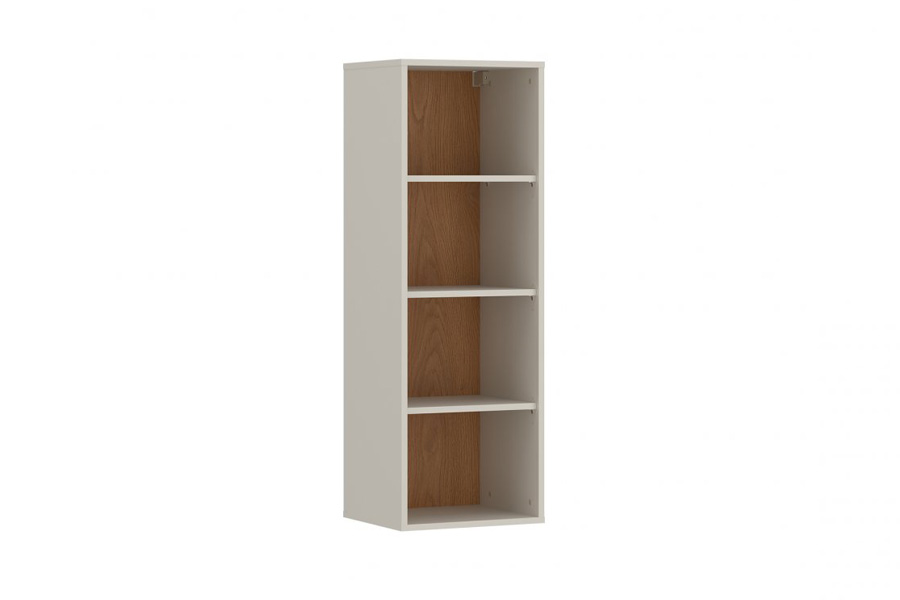 - Wiszący regał, dostępny w ramach serii FANO prezentuje zestawianie ponadczasowej, uniwersalnej kolorystyki: Kaszmir i Dąb Karmel z prostotą i ponadczasowością kształtu. Mebel powstał z płyty wiórowej laminowanej, dedykowany jest do zastosowania wewnątrz pomieszczeń i łatwo utrzymać go w czystości z pomocą wilgotnej ściereczki. Pojemne półki zapewniają ekspozycję przedmiotów dekoracyjnych, ramek ze zdjęciami oraz trofeów.