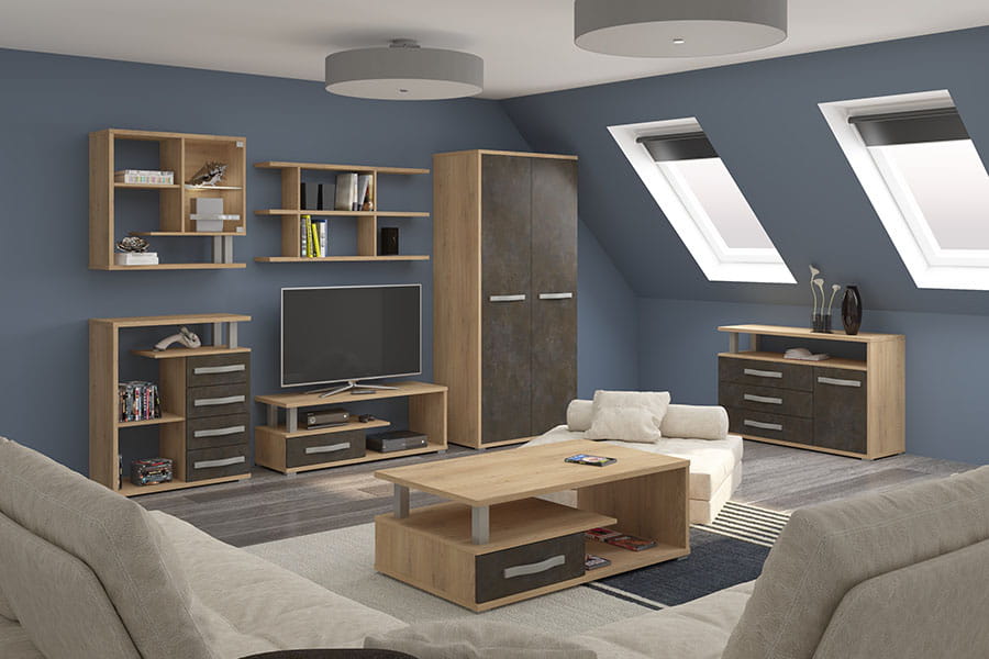 Kolekcja ANGEL to nowoczesne meble przeznaczone do aranżacji pokoju dziennego lub pokoju młodzieżowego. System mebli został wykonany z wysokiej jakości płyty laminowanej. Kolekcja została wykonana w kilku wersjach kolorystycznych do wyboru, dzięki czemu na pewno znajdziemy coś dla siebie. Dzięki użytym do produkcji materiałom mamy pewność, że meble będą nam służyć przez długie lata.