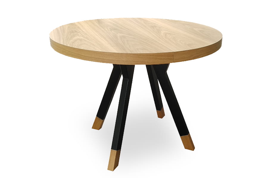 Stół ALEX jest meblem, który znajdzie zastosowanie zarówno w jadalni, jak i w pokoju dziennym. Dobrze prezentować będzie się on we wnętrzach tak nowoczesnych, jak i nieco bardziej klasycznych. Na uwagę zasługują tutaj nietuzinkowo wykonane nogi, które skutecznie przyciągają wzrok. Stół wyposażony jest on w 3 wkładki przedłużające, każda o wielkości 50 centymetrów, które doskonale sprawdzą się podczas wszelkiego rodzaju spotkań towarzyskich. Zastosowany został tu teleskopowy system rozkładania, w ramach którego jedna część blatu przesuwa się razem z nogami, podczas gdy druga pozostaje nieruchoma.