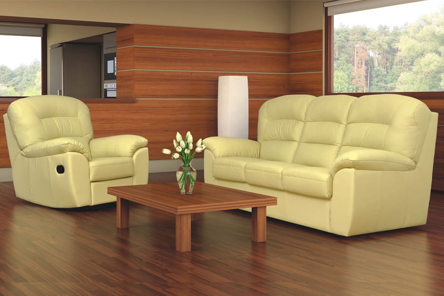 - sofa tapicerowana w tkaninie lub skórze naturalnej