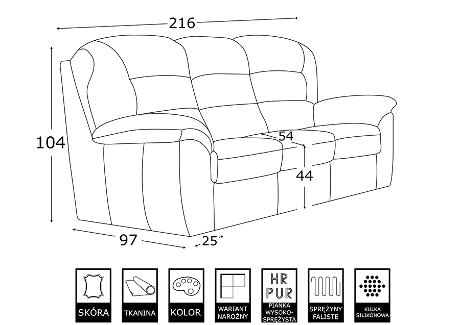 - szerokość - 216 cm