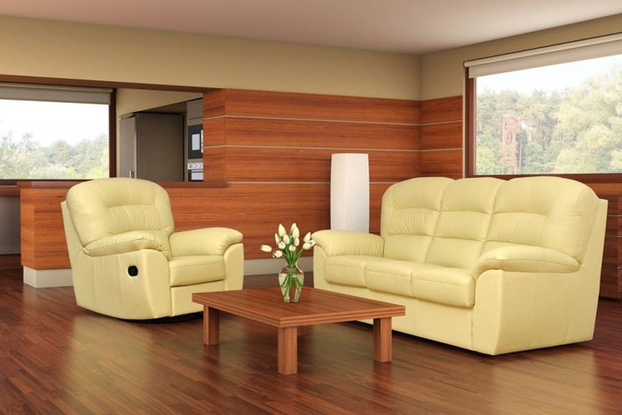 - sofa tapicerowana w tkaninie lub skórze naturalnej
