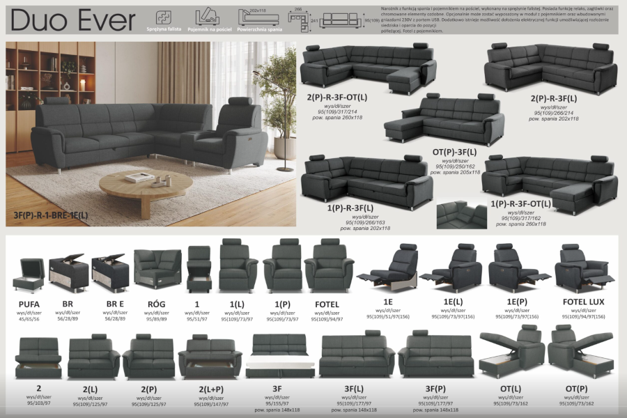 Sofa Duo Ever 2LP z szufladą to praktyczny meble, z którego korzystać mogą jednocześnie 2 osoby. Znajdzie ona zastosowanie w każdym pokoju dziennym, który urządzony został w stylu nowoczesnym. Sofa sprawdzać będzie się tak na co dzień, jak i podczas spotkań w gronie rodziny i przyjaciół. Wyposażona jest ona w praktyczną szufladę, którą wykorzystać można do przechowywania pościeli. Siedzisko sofy z szufladą wypełniają sprężyny faliste i pianka wysoko elastyczna HR, a oparcie - pianka wysokoelastyczna. Znakomicie komponować będzie się ona z fotelem z tej samej kolekcji. Do wyboru jest tutaj kilkadziesiąt odcieni tkaniny obiciowej, co sprawia, że z łatwością można dopasować mebel do stylu, w jakim urządzony został pokój dzienny.