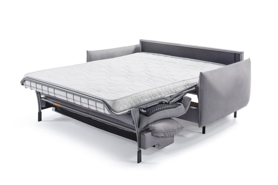 - funkcja spania - stelaż włoski to rozwiązanie, które polecane jest do spania codziennego. Rozłożenie mebla z tym systemem rozpoczynamy od pociągnięcia oparcia. W tym momencie oparcie i siedzisko ulegają złożeniu, a spod nich wysuwa się pełnowymiarowy i wygodny materac. W ten sposób uzyskujemy równą i komfortową powierzchnię spania. Rozkładanie mebla z tym systemem jest szybkie i co ważne, nie wymaga odsuwania go od ściany.