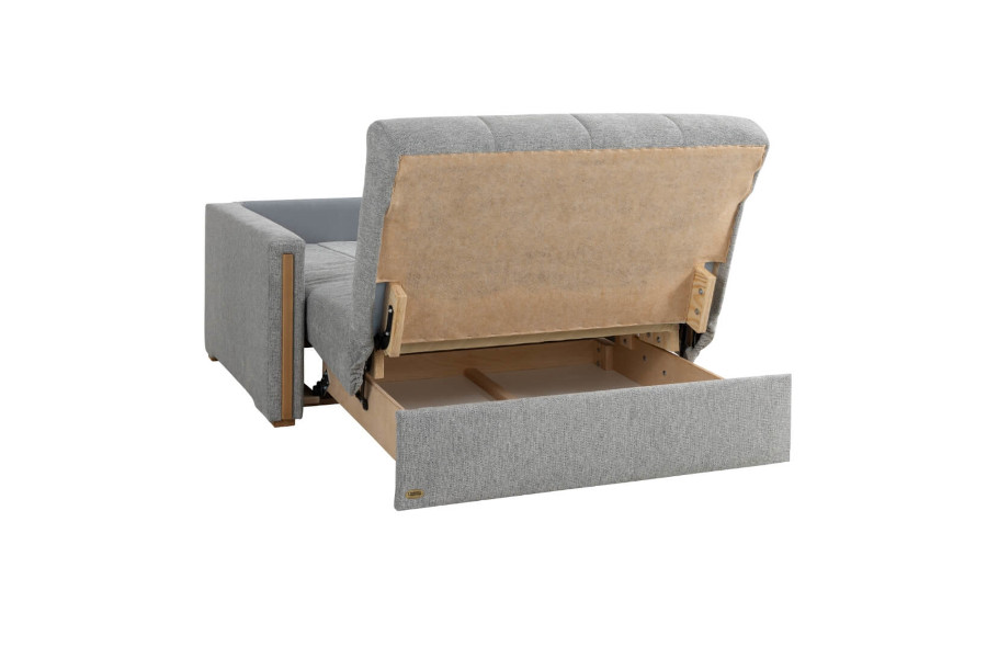 Elegancka, praktyczna i funkcjonalna – taka właśnie jest sofa 3-osobowa Tuli I, która występuje w dwóch różnych rozmiarach: dwuosobowa oraz trzyosobowe . Wygodne siedzisko z dwoma poduszkami ozdobnymi uzupełnione zostało gustownie wyprofilowanymi, drewnianymi podłokietnikami dodającymi szyku i elegancji. W tym niewielkim meblu kryje się ogromna funkcjonalność, bowiem sofa posiada funkcję spania (rozkładanie typ wózek ) oraz praktyczny pojemnik, w którym można przechowywać pościel.