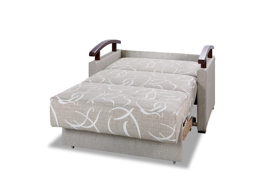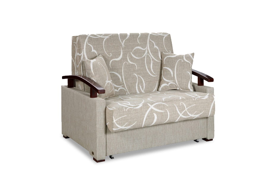 Elegancka, praktyczna i funkcjonalna – taka właśnie jest sofa 1-osobowa Tuli T, która występuje w dwóch różnych rozmiarach: dwuosobowa oraz jednoosobowa. Wygodne siedzisko z dwoma poduszkami ozdobnymi uzupełnione zostało gustownie wyprofilowanymi, drewnianymi podłokietnikami dodającymi szyku i elegancji. W tym niewielkim meblu kryje się ogromna funkcjonalność, bowiem sofa posiada funkcję spania (rozkładanie typ wózek ) oraz praktyczny pojemnik, w którym można przechowywać pościel.
