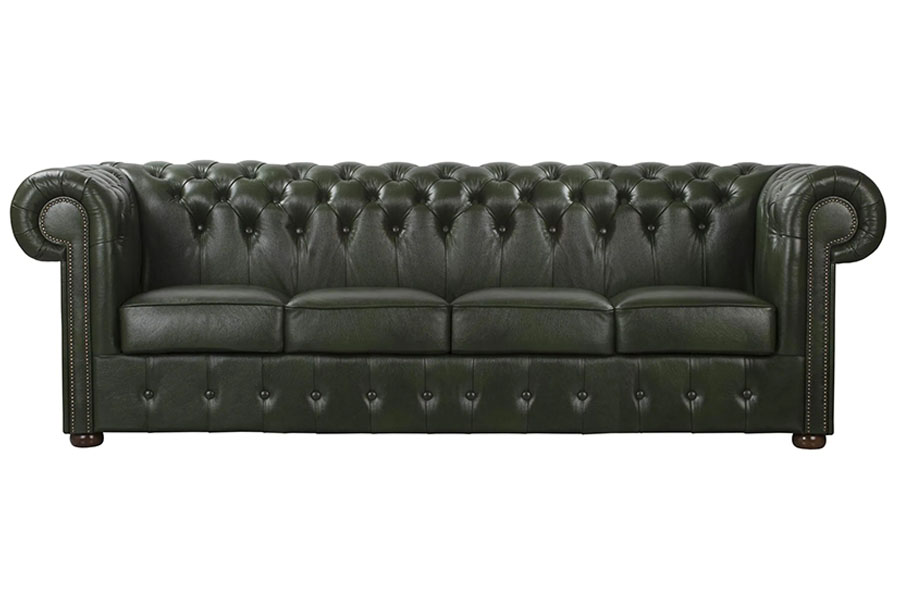 Sofa czteroosobowa skórzana zielona Chesterfield King - ROYAL SOFA