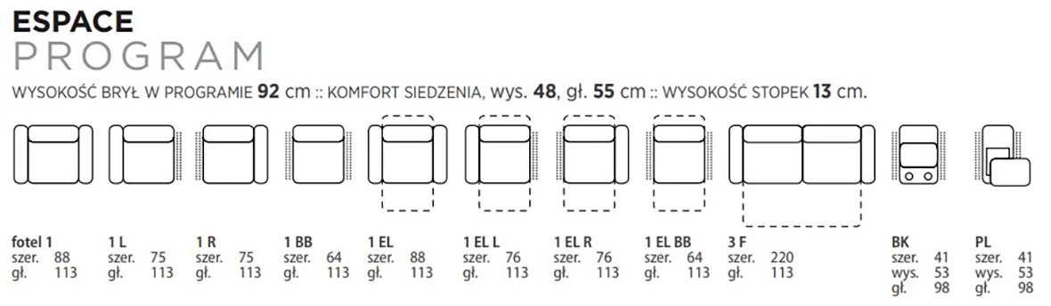 Sofa modułowa ESPACE 1ELL-1BB-1R - FENIKS MEBLE