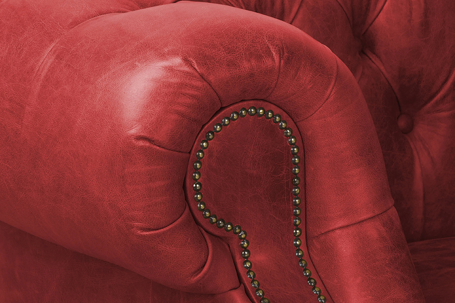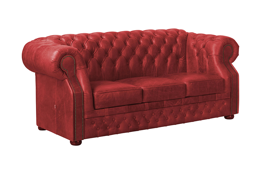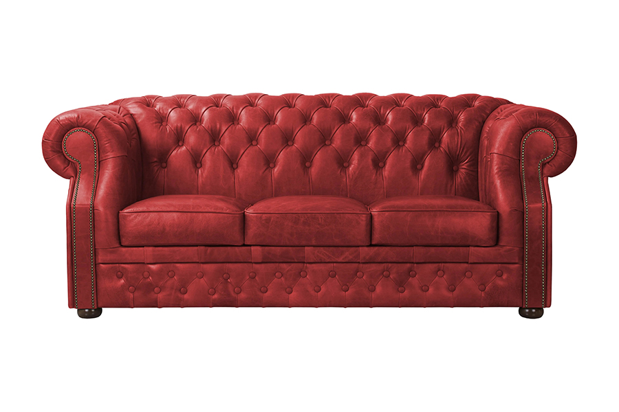 Sofa skórzana trzyosobowa czerwona Chesterfield Manchester - ROYAL SOFA
