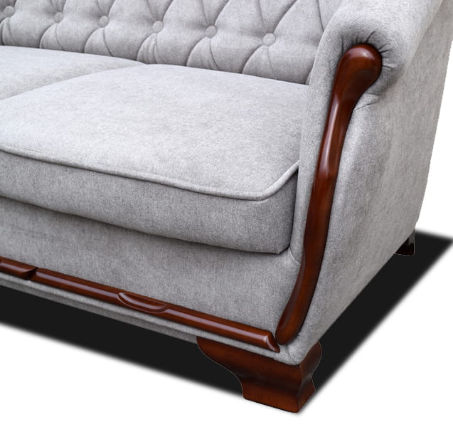 W salonie z sofą Ludwik poczujesz się wyjątkowo. Szlachetna oraz bogato zdobiona forma tego wypoczynkowego mebla wprowadzi do wnętrza klimat pełen elegancji i klasy. Drewniane detale wyróżniają się zaokrągloną linią oraz subtelnym rzeźbieniem. Sofa Ludwik wygląda fantastycznie również dzięki tapicerowanej powierzchni, wykończonej w tkaninach o różnym kolorze i interesujących wzorach do wyboru. Sofa posiada funkcje spania ( typ belgijski )