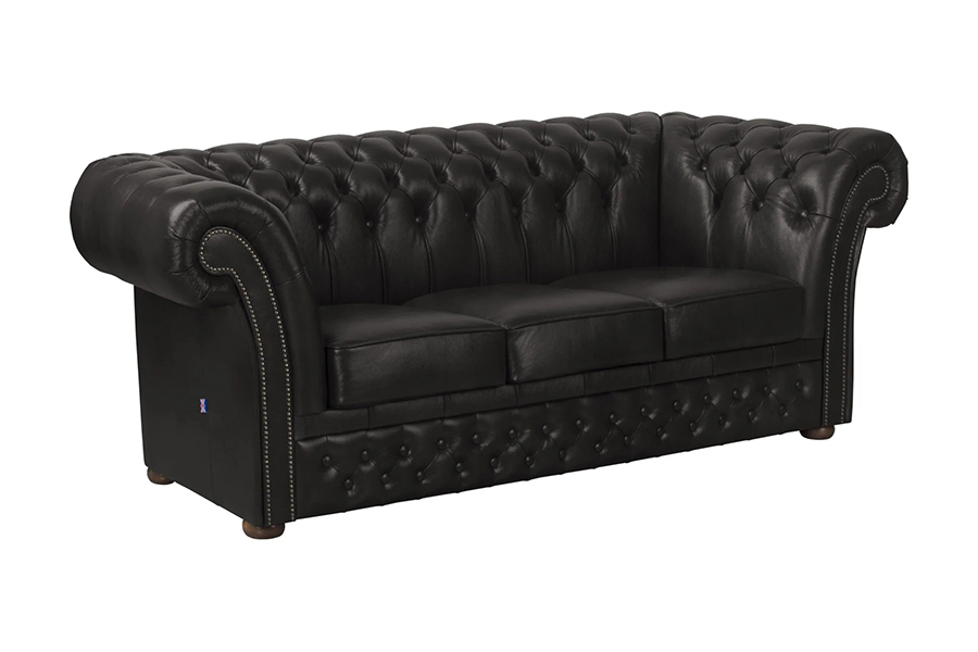Sofa trzyosobowa skórzana czarna Chesterfield Hampton - ROYAL SOFA