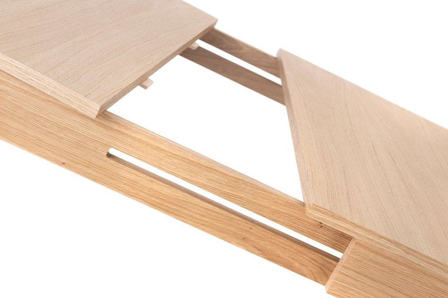 Stół NORD to połączenie elegancji, funkcjonalności i solidnego wykonania. Wykonany z litego drewna dębowego, zachwyca swoją naturalną urodą i trwałością. Jego wymiary to 160 x 90 cm, a po rozłożeniu aż 260 cm! Co więcej, wkłady do rozkładania stołu są sprytnie przechowywane wewnątrz, co jest niezwykle praktyczne.
