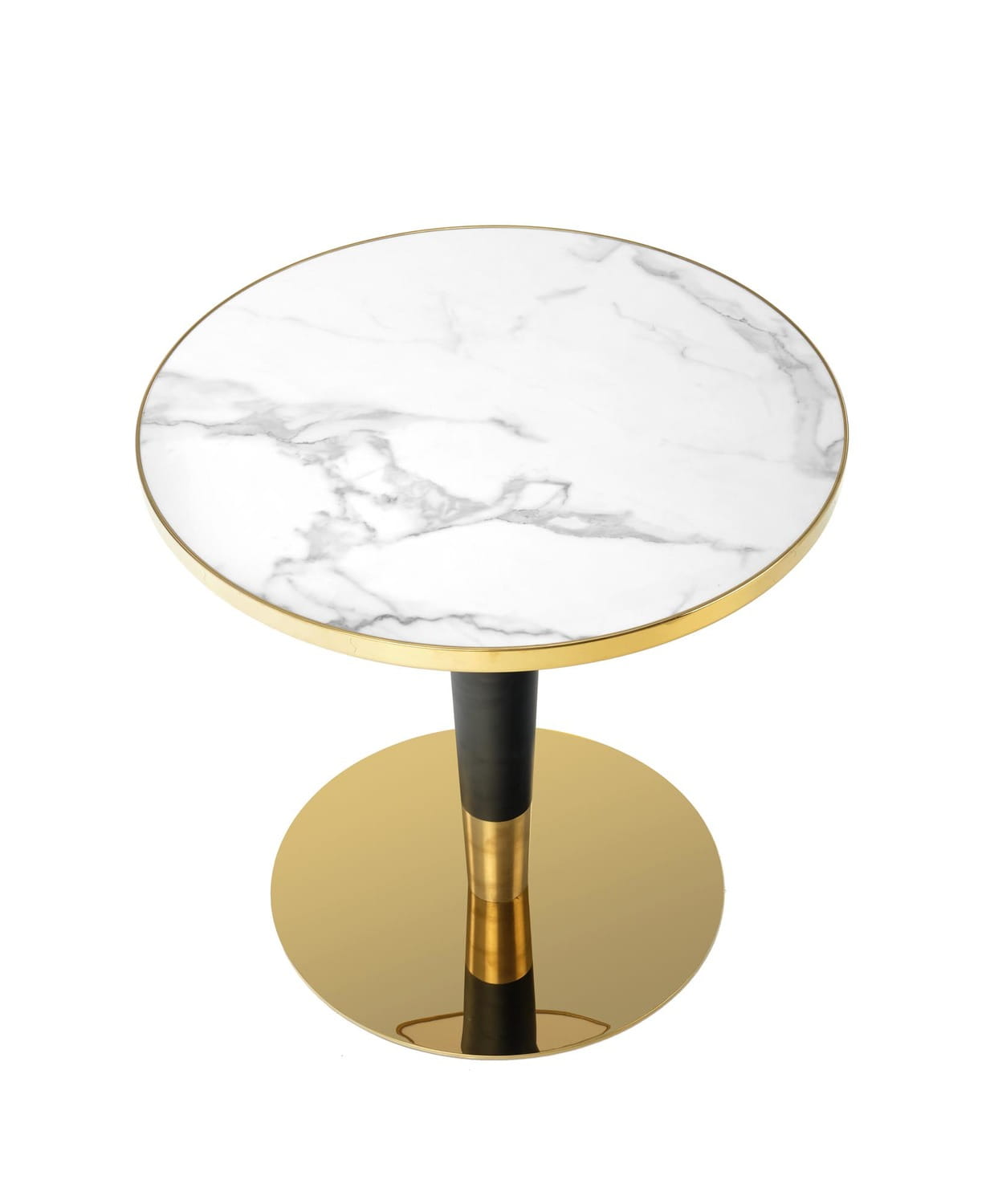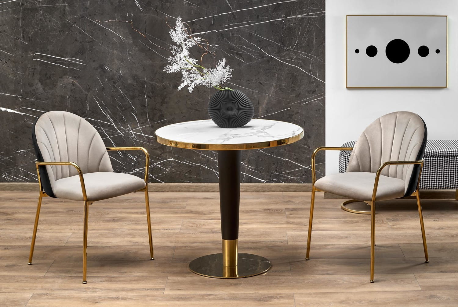 Stół okrągły MORATA - biały marmur, czarny, złoty