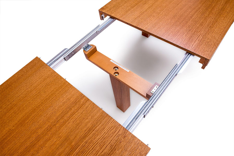 • Stół rozkładany z 4 wkładkami po 50 cm ( 2 wkładka trzymana poza stołem + dodatkowa 5 noga )