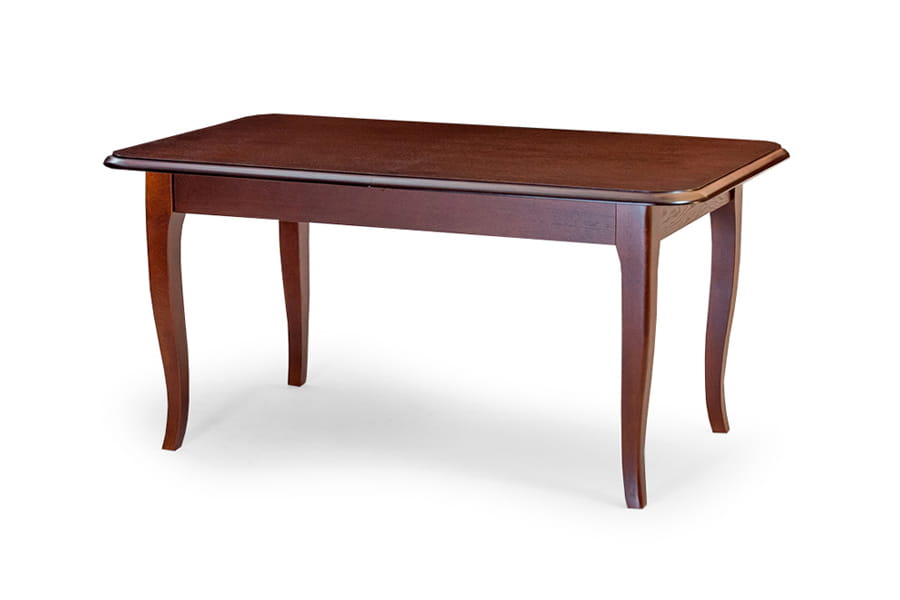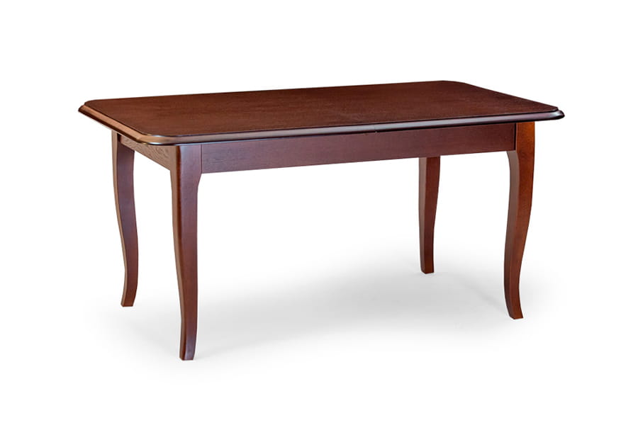 Stół Lord 2 pasuje do klasycznie zaaranżowanej jadalni. Najbardziej interesującymi detalami w wykończeniu mebla są stylizowane krawędzie blatu i ozdobne nóżki - lekko wygięte, poszerzające się ku górze. Zastosowanie delikatnych, wpadających w odcień naturalnego drewna barw ma na celu ocieplenie wizerunku stołu i nadanie mu bardziej eleganckiego charakteru. Funkcja rozkładania blatu, w którą wyposażono ten mebel sprawia, że w dowolnej chwili możesz zmienić jego wielkość i zgromadzić przy stole różną liczbę gości. Stół Lord dzięki zastosowaniu odpowiedniej technologii lakierowania i doborze wysokiej jakości materiałów wykończeniowych jest odporny na działanie alkoholu, wysokiej temperatury i ścieralności.