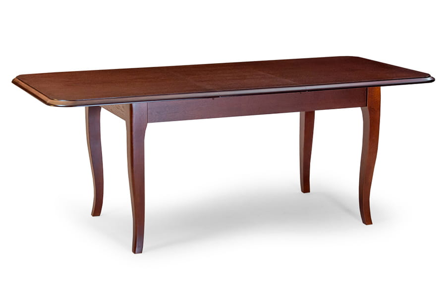 Stół Lord 2 pasuje do klasycznie zaaranżowanej jadalni. Najbardziej interesującymi detalami w wykończeniu mebla są stylizowane krawędzie blatu i ozdobne nóżki - lekko wygięte, poszerzające się ku górze. Zastosowanie delikatnych, wpadających w odcień naturalnego drewna barw ma na celu ocieplenie wizerunku stołu i nadanie mu bardziej eleganckiego charakteru. Funkcja rozkładania blatu, w którą wyposażono ten mebel sprawia, że w dowolnej chwili możesz zmienić jego wielkość i zgromadzić przy stole różną liczbę gości. Stół Lord dzięki zastosowaniu odpowiedniej technologii lakierowania i doborze wysokiej jakości materiałów wykończeniowych jest odporny na działanie alkoholu, wysokiej temperatury i ścieralności.
