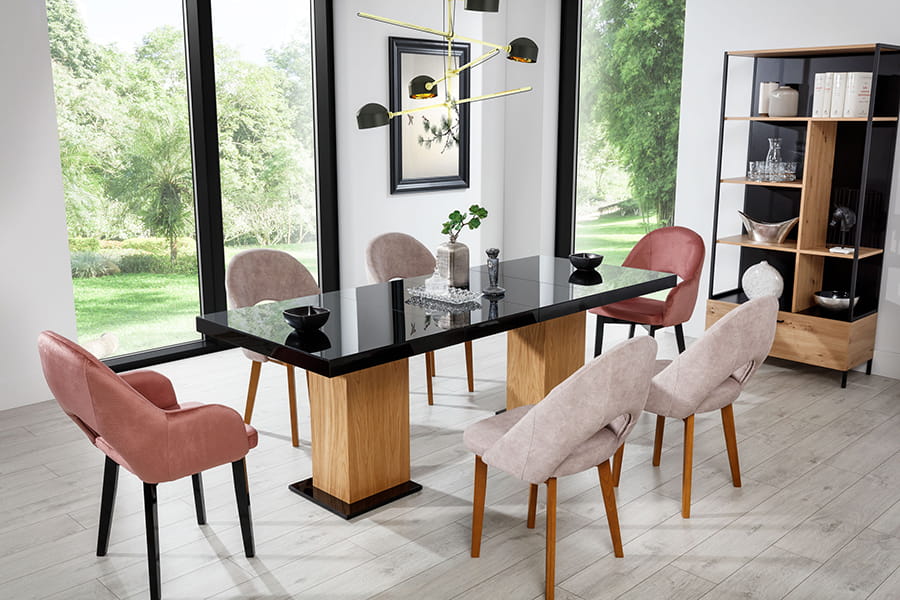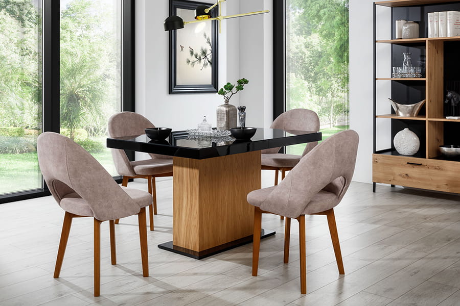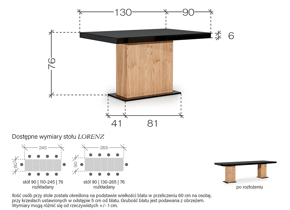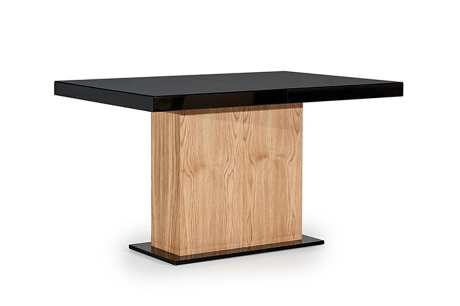 Stół Lorenz przypadnie do gustu wszystkim miłośnikom nowoczesnych, minimalistycznych, surowych wnętrz. To znakomite rozwiązanie do każdego pokoju dziennego czy jadalni. Stół Lorenz jest modelem o konstrukcji kolumnowej. Sprzedawany jest on w zestawie z 3 wkładami przedłużającymi blat, każda o długości 45 centymetrów. Przeznaczone są one do przechowywania poza stołem. W stole zastosowany został teleskopowy system rozkładania. Polega on na tym, że jedna część blatu przesuwa się razem z nogami, a druga pozostaje nieruchoma. Po rozłożeniu, podstawa mebla dzieli się na 2 kolumny. Stół dostępny jest w kilkunastu wersjach kolorystycznych, co sprawia, że każdy znajdzie tutaj coś dla siebie. O konstrukcji kolumnowej, nawiązującej do kubistycznej klasyki w projektowaniu mebli – stół Lorenz w technologii Lacobel, czyli błyszczącym blatem, to kwintesencja elegancji w każdym pomieszczeniu, w jakim go umieścisz. Wygląd ma bardzo uniwersalny, co powoduje, że znajdzie swoje wszechstronne zastosowanie w praktycznie każdym wnętrzu. W formie rozłożonej, może ugościć jeszcze większą liczbę osób i ciekawie rozmieścić wokół niego krzesła. Istnieje możliwość pokrycia jego stopy stalą nierdzewną, które to rozwiązanie jest coraz bardziej wybierane przez naszych Klientów.