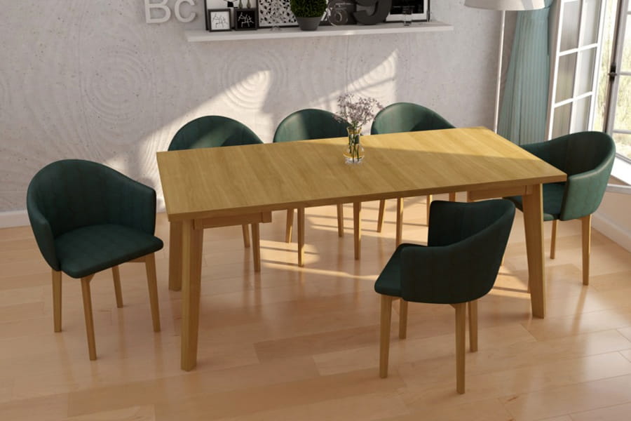 Milo 90x190 cm to stół który z powodzeniem wstawić można zarówno do jadalni, jak i do salonu. Dobrze prezentować będzie się on we wnętrzach tak klasycznych, jak i nowoczesnych. Stół Milo posiada klasyczną, ponadczasową formę. Sprawdzi się on tak na co dzień, jak i podczas spotkań rodzinnych. Wyposażony został bowiem w funkcję rozkładania. W zestawie znajdziemy 2 wkłady przedłużające blat, każdy o szerokości 50 centymetrów. Stół Milo posiada teleskopowy system rozkładania. Jedna część blatu przesuwa się tutaj razem z nogami, druga - pozostaje nieruchoma. Szerokość stołu Milo przed rozłożeniem to 90 cm, po - 190 centymetrów. Mebel ma wysokość 76 cm i głębokość 90 cm. Stół Milo został wykonany z wysokiej jakości drewna dębowego, które charakteryzuje się dużą trwałością i odpornością na uszkodzenia.