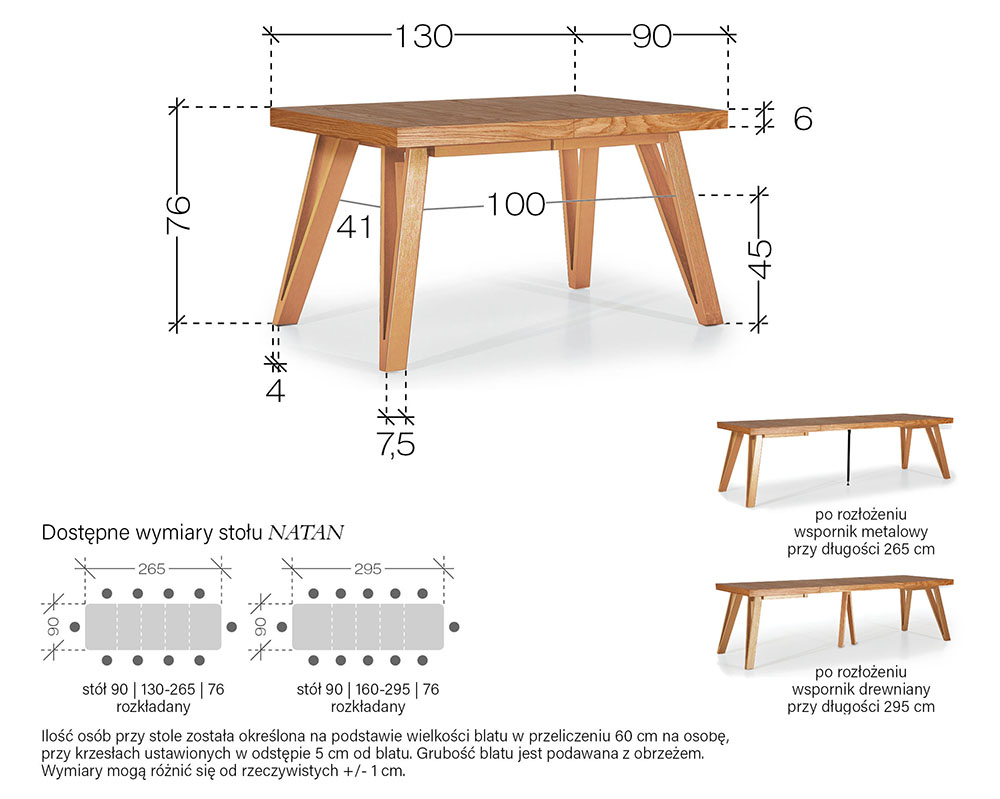 - stół wykonany jest z litego drewna bukowego lub dębowego