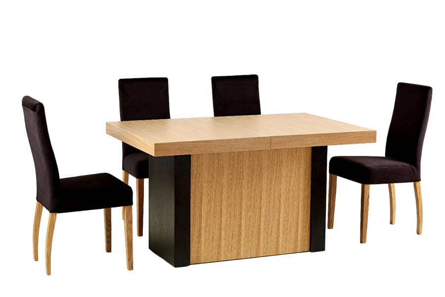 Stół NICOLA wykonany z najwyższej jakości komponentów. Meble produkowane z litego drewna dębowego lub bukowego z dodatkiem okleiny naturalnej.