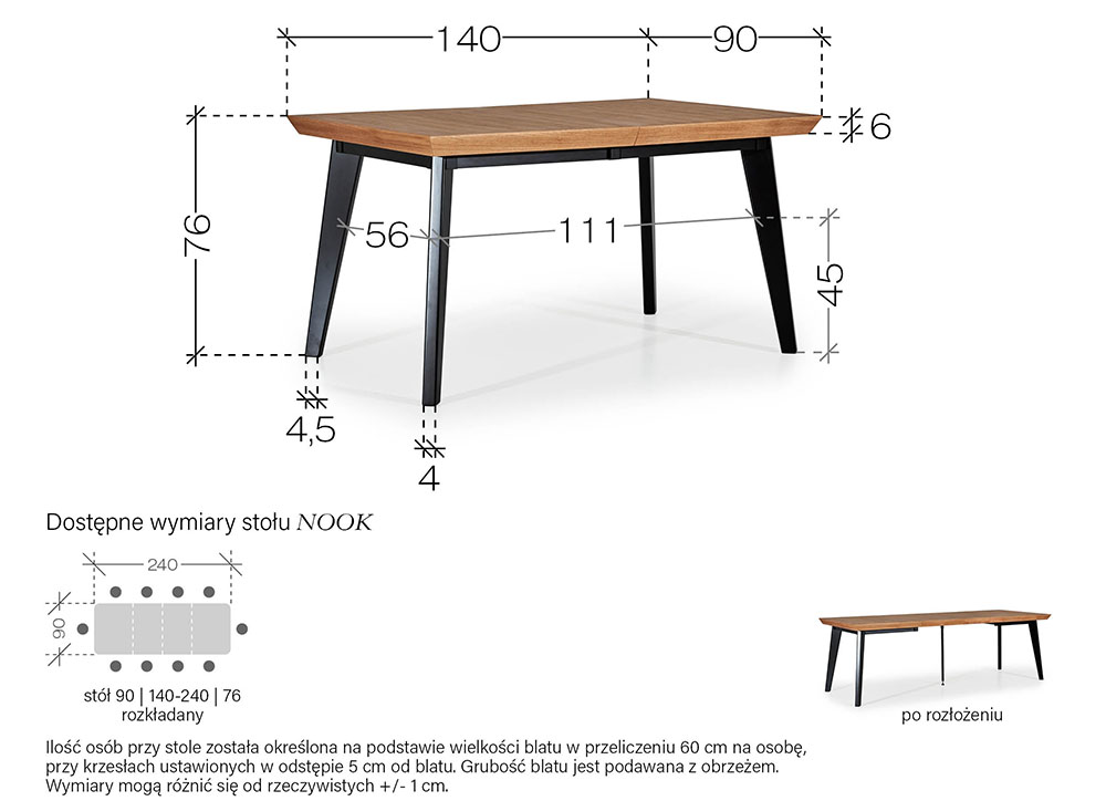 - Liczba miejsc przy stole: 4 osoby / 8 osób