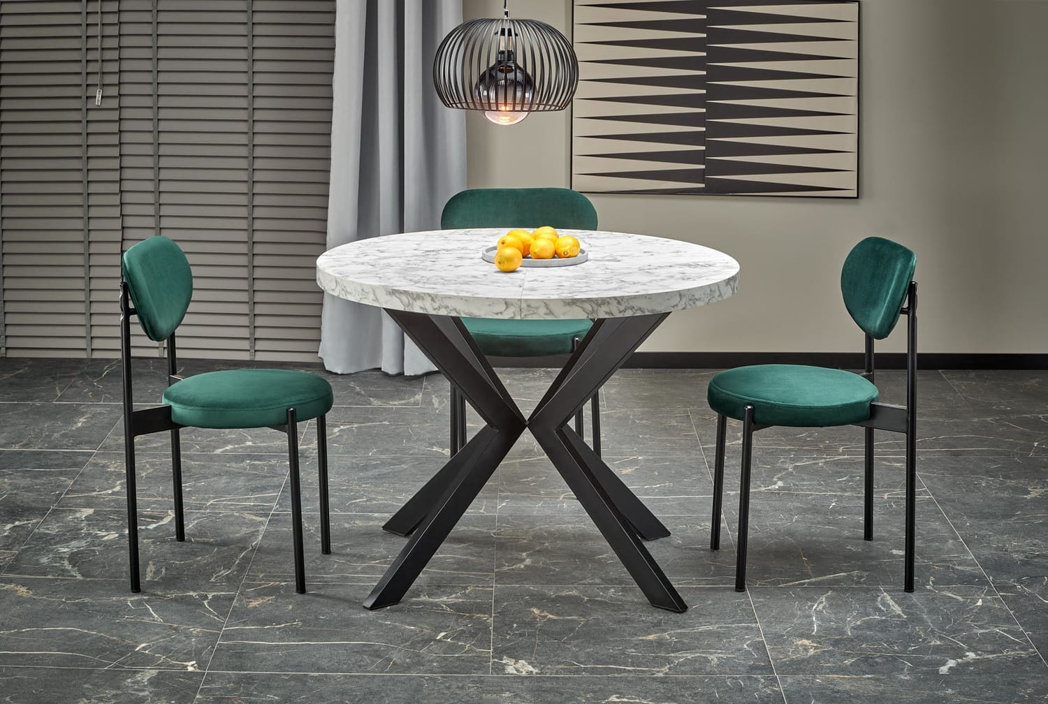 Stół rozkładany PERONI 100-250 cm - biały marmur, nogi metal czarny