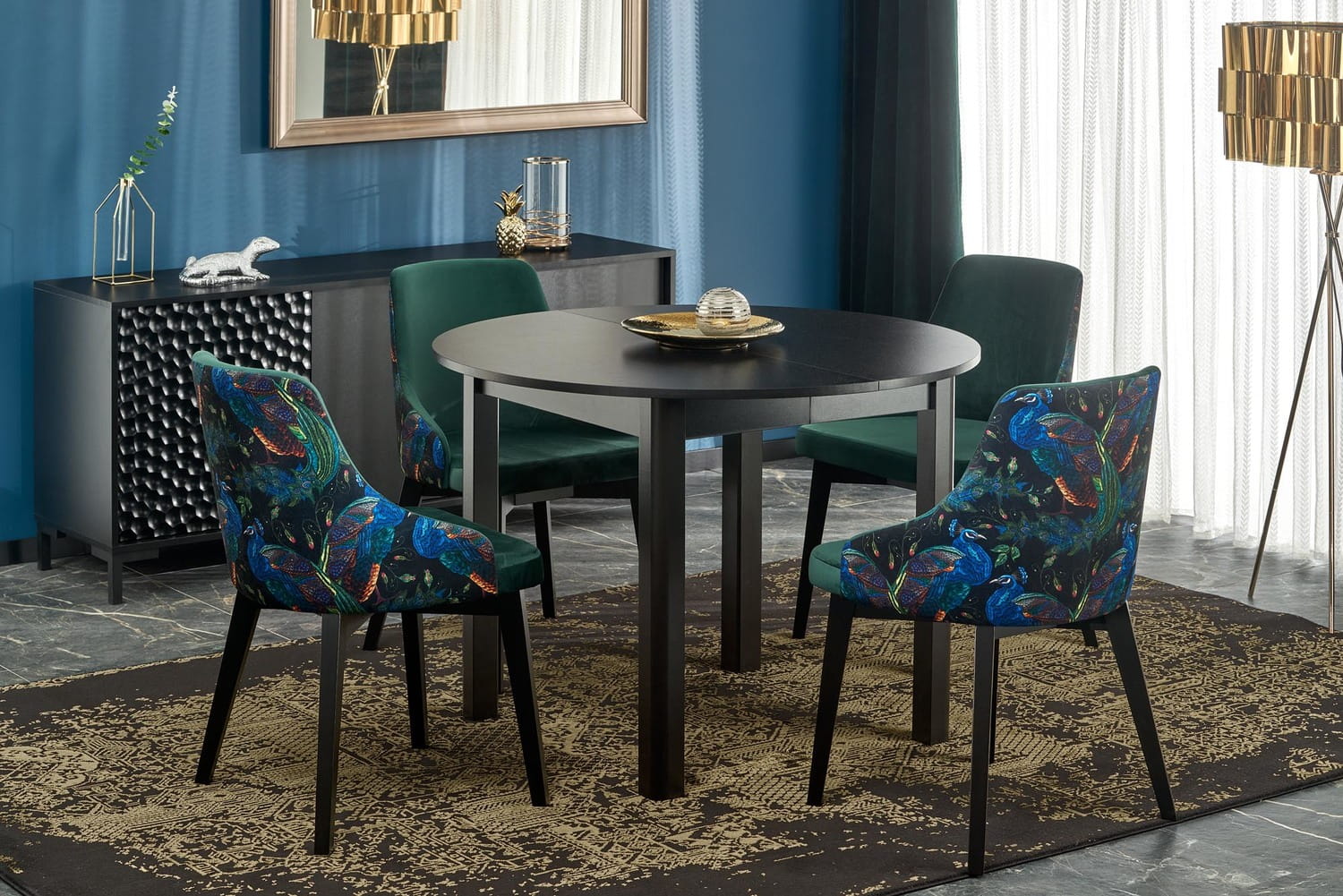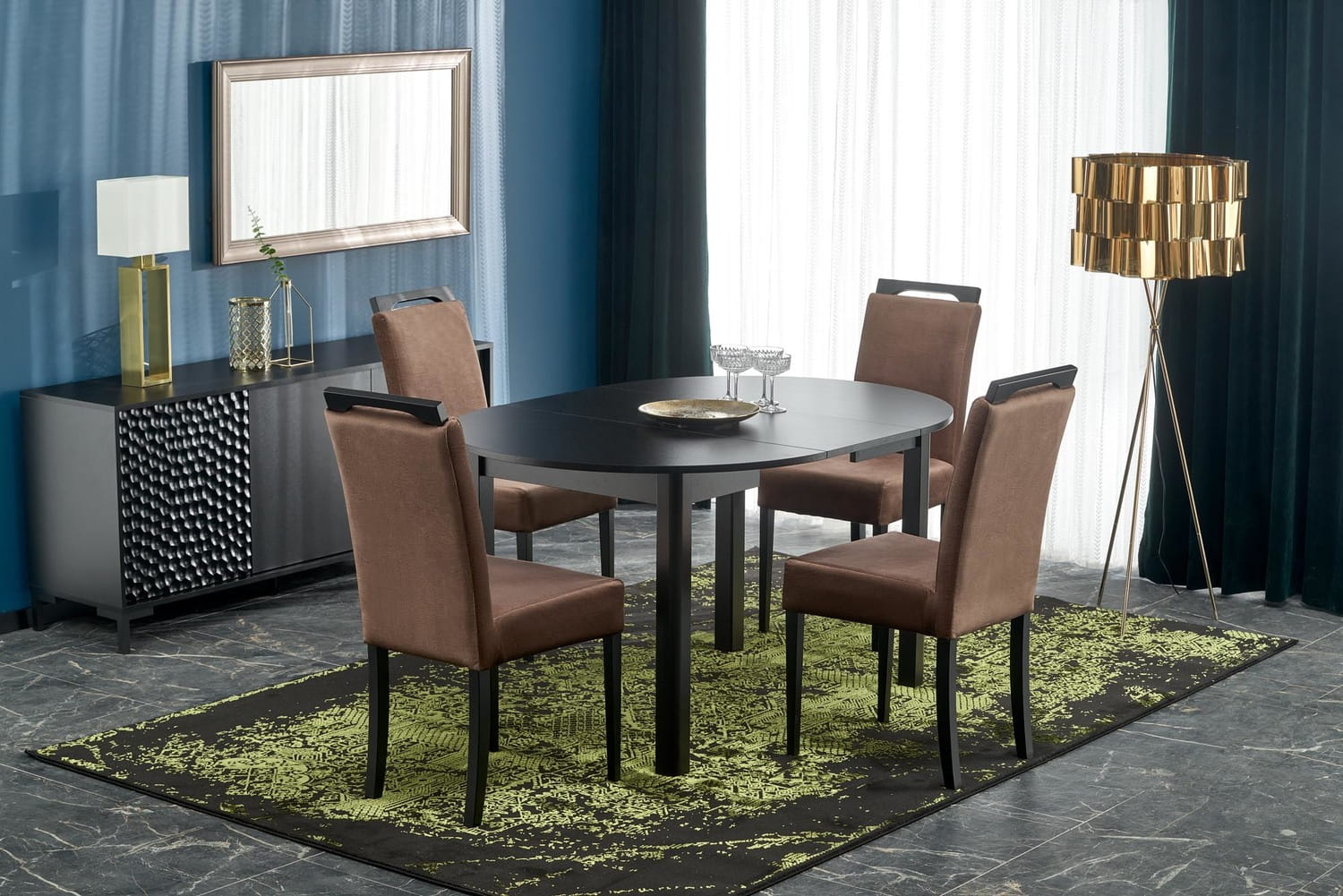 Okrągły stół Ringo, w kolorze czarnym to wyjątkowo stylowe i eleganckie rozwiązanie, które z pewnością przyciągnie uwagę w Twoim domu. Czarny kolor zawsze kojarzony jest z elegancją, nowoczesnością i prestiżem. Taki stół będzie idealnym elementem wystroju wnętrz dla osób, które cenią sobie nie tylko funkcjonalność, ale również estetykę. Stół w kolorze czarnym doskonale komponuje się z innymi elementami wystroju, niezależnie od stylu, w jakim urządzono wnętrze. Można go zestawić z jasnymi lub ciemnymi meblami, a także z innymi dodatkami, takimi jak lampy czy dywany, aby stworzyć spójny i harmonijny wystrój. Okrągły blat stołu to również doskonałe rozwiązanie dla mniejszych przestrzeni, ponieważ nie zajmuje tyle miejsca co stół prostokątny. Dzięki temu, że nie ma ostro zakończonych rogów, stół jest również bezpieczny dla dzieci, które nie będą narażone na przypadkowe uderzenia o ostry narożnik. Okrągły stół z funkcją rozkładania to praktyczne rozwiązanie, które umożliwia powiększenie stołu, gdy pojawi się taka potrzeba. Dzięki temu będziesz mógł zaprosić więcej gości na przyjęcie lub rodzinny obiad.