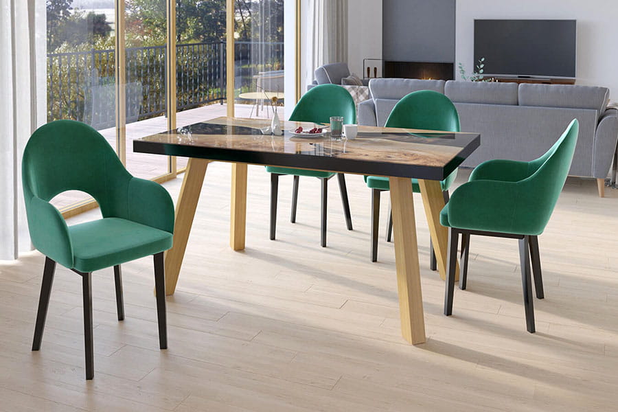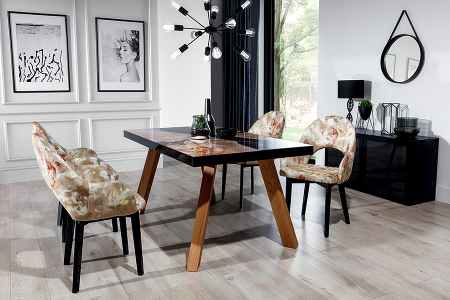 - grafika na blacie imitującym żywicę