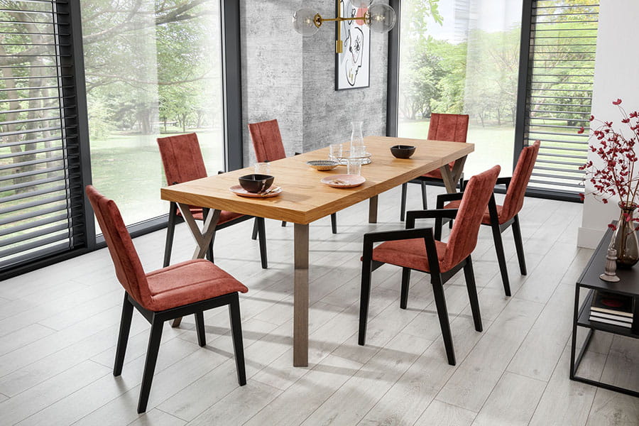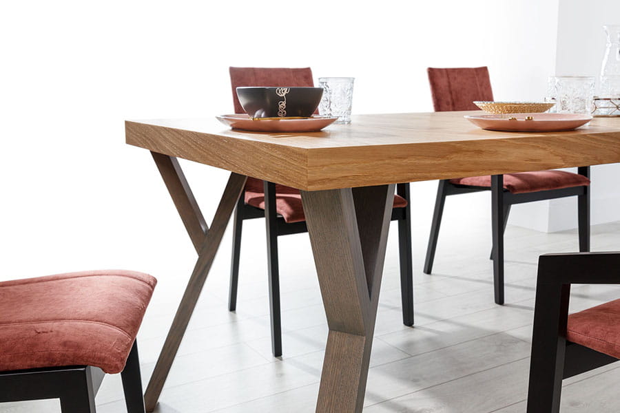 Model Seed nieszablonowe drewniane nogi w formie litery Y, ciekawa propozycja dla osób ceniących sobie indywidualność, prostotę a zarazem funkcjonalność nowoczesnego rozkładanego stołu. Prostokątny pogrubiany fornirowany blat w dwóch opcjach wymiarowych z trzema bądź dwoma dodatkowymi blatami, każdy po 50 cm. W zależności od potrzeb to Ty decydujesz ile wkładek zastosować, szereg możliwości i kombinacji w ustawieniu długości blatu.
