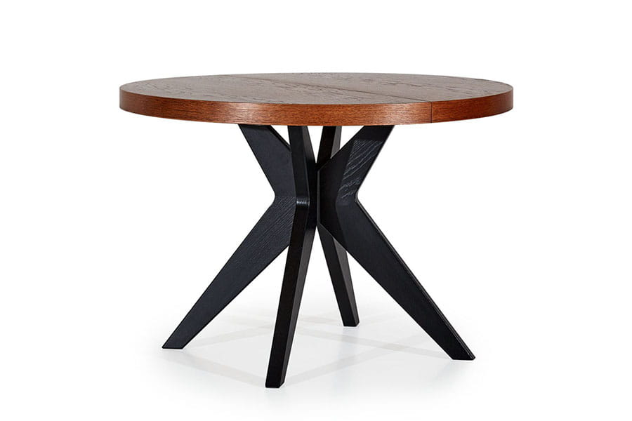 Prosty, subtelny a zarazem solidy i wytrzymały stół. Drewniana noga w kolorze intensywnej czerni oraz warstwa drewna na pogrubionym blacie daje naprawdę finezyjny efekt. Model kusi nie tylko w wersji przed rozłożeniem. Dostępny w dwóch różnych wymiarach oraz z dwiema różnymi długościami blatów dodatkowych aż do 310 cm. Urozmaici nie jeden salon, jadalnię czy kuchnię.