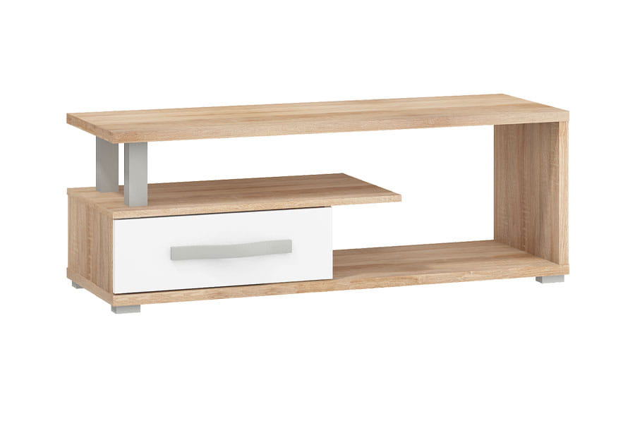 Stolik RTV ANGEL 1D - sonoma jasna-biały połysk