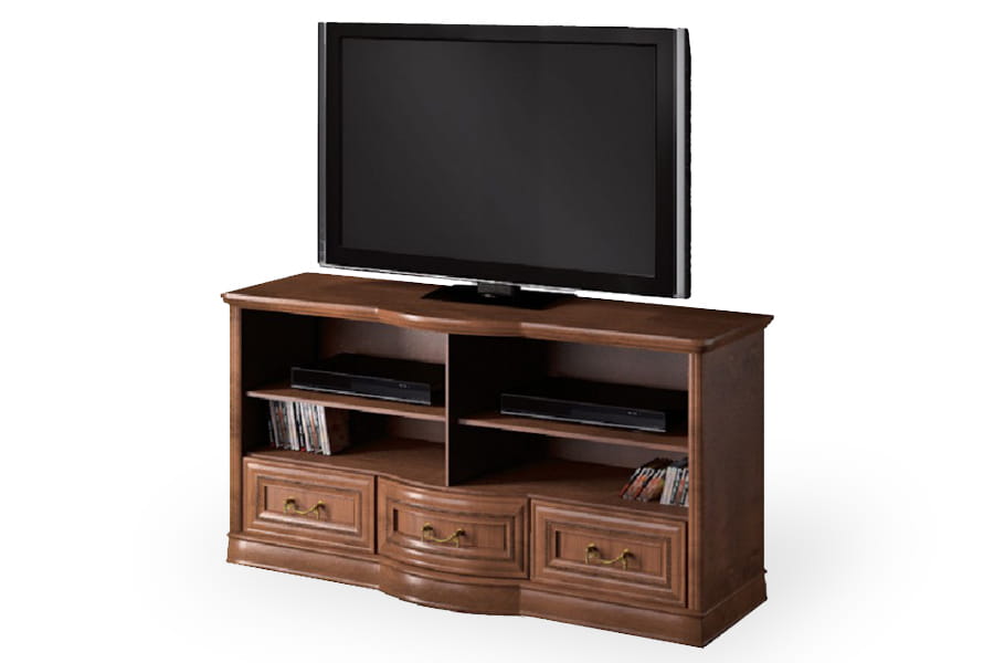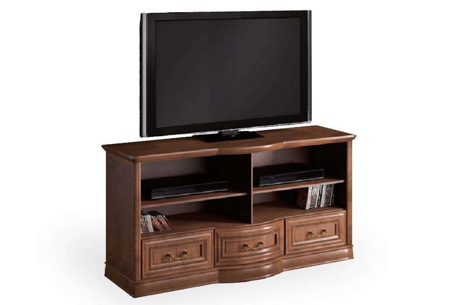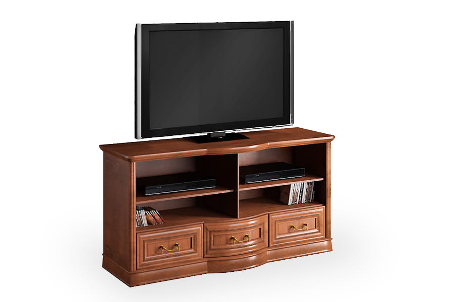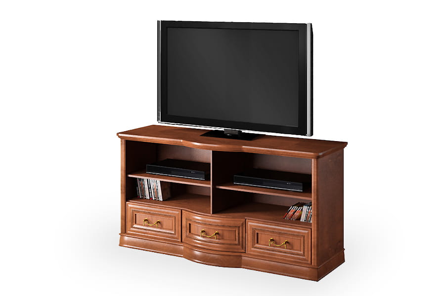 Stolik RTV Rupert 3SZ firmy Latzke świetnie wkomponuje się w przestronne i elegancko umeblowane wnętrze. Jest pięknie wykończona, ponieważ posiada rzeźbione detale oraz delikatnie łamany zaokrągloną linią front. Te elementy wraz z ozdobnymi uchwytami są oznaką elegancji i kunsztu klasycznego rzemiosła. Mebel będzie na co dzień bardzo praktyczny, ponieważ posiada pojemne trzy szuflady i półki na sprzęt. Stolik rtv wykonana jest z wysokiej jakości materiałów, które dbają o jej wysoką trwałość i odporność na niszczenie. Domyślny kolor dla tego produktu to czereśnia liguryjska.