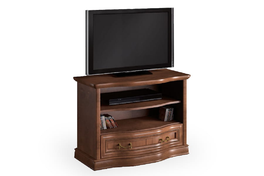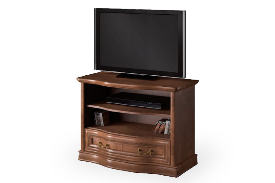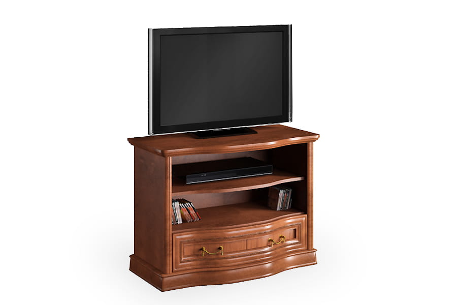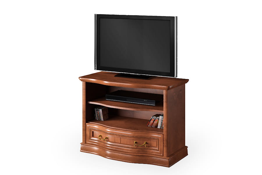 Stolik RTV Rupert-S firmy Latzke świetnie wkomponuje się w przestronne i elegancko umeblowane wnętrze. Jest pięknie wykończona, ponieważ posiada rzeźbione detale oraz delikatnie łamany zaokrągloną linią front. Te elementy wraz z ozdobnymi uchwytami są oznaką elegancji i kunsztu klasycznego rzemiosła. Mebel będzie na co dzień bardzo praktyczny, ponieważ posiada pojemną szufladę i dwie półki na sprzęt. Stolik rtv wykonana jest z wysokiej jakości materiałów, które dbają o jej wysoką trwałość i odporność na niszczenie. Domyślny kolor dla tego produktu to czereśnia liguryjska.
