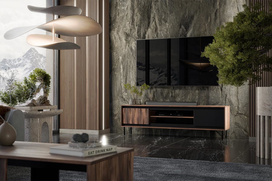 Kolekcja mebli skrzyniowych Swing to nie tylko zwykłe meble, to prawdziwe dzieła sztuki, które wniosą do Twojego wnętrza niepowtarzalny charakter i elegancję. Wykonane z wysokiej jakości płyty meblowej laminowanej, gwarantują trwałość i solidność na lata. Fronty w orzechowym wykończeniu ze strukturą 3D nadają meblom unikalny i efektowny wygląd. To nie tylko meble do przechowywania, to prawdziwa ozdoba przestrzeni, która przyciąga uwagę i dodaje wnętrzu niepowtarzalnego uroku. Matowa czerń w połączeniu z orzechowymi detalami tworzy harmonijną kompozycję, nadając pomieszczeniu nowoczesnego i stylowego charakteru. To połączenie klasycznej elegancji z nowoczesnym designem. Stalowe nóżki dodają lekkości i finezji, jednocześnie nadając meblom lekkiego, unoszącego się charakteru. To nie tylko funkcjonalność, ale również wyjątkowy design, który wzbogaci Twoje wnętrze. Kolekcja składa się z różnorodnych elementów, od szafy po witrynę, od ławy po komodę niską i wysoką, aż po szafkę RTV. To kompleksowe rozwiązanie dla każdego pomieszczenia, zapewniające nie tylko praktyczność, ale także estetyczne doznania. Zakup kolekcji mebli skrzyniowych Swing to inwestycja w komfort, styl i trwałość. Pozwól swojemu wnętrzu ożyć i zyskać niepowtarzalny charakter dzięki tym eleganckim meblom.